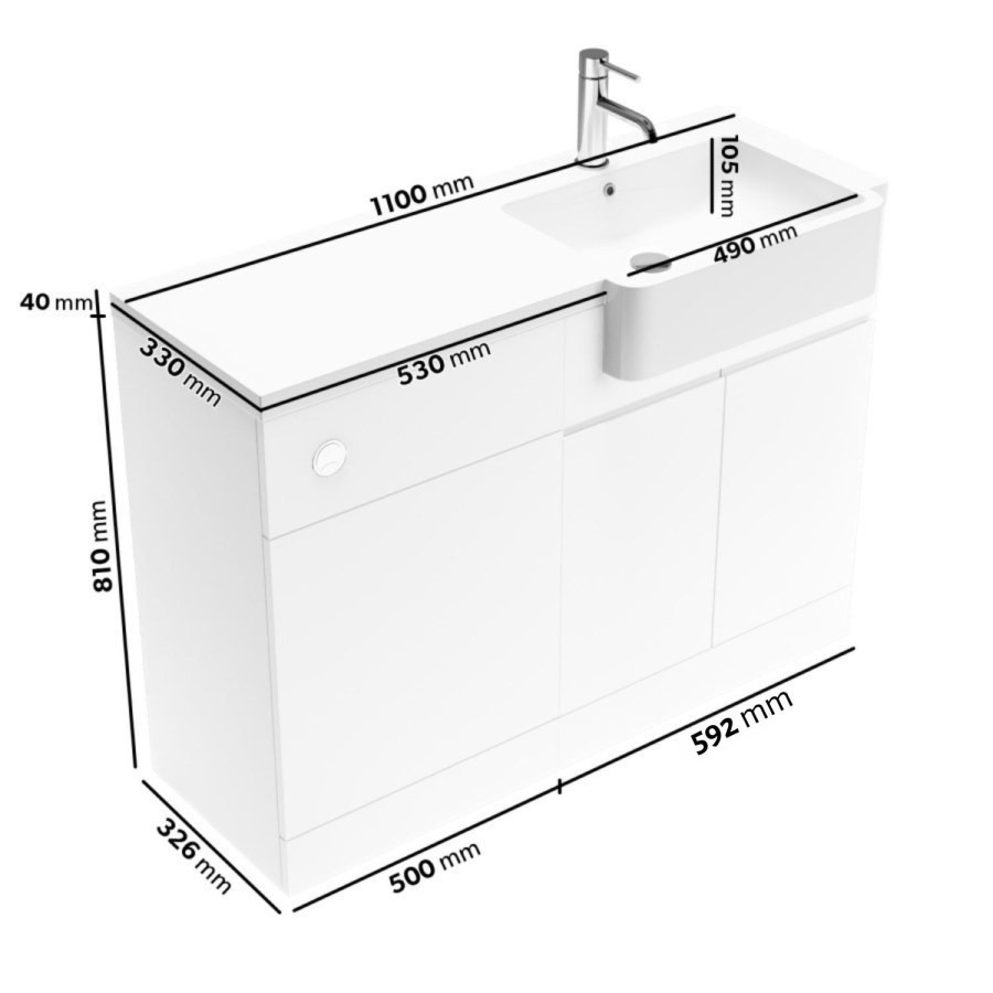 • Overall Toilet & Sink Unit Dimensions:  W1100 x D881 x H850mm