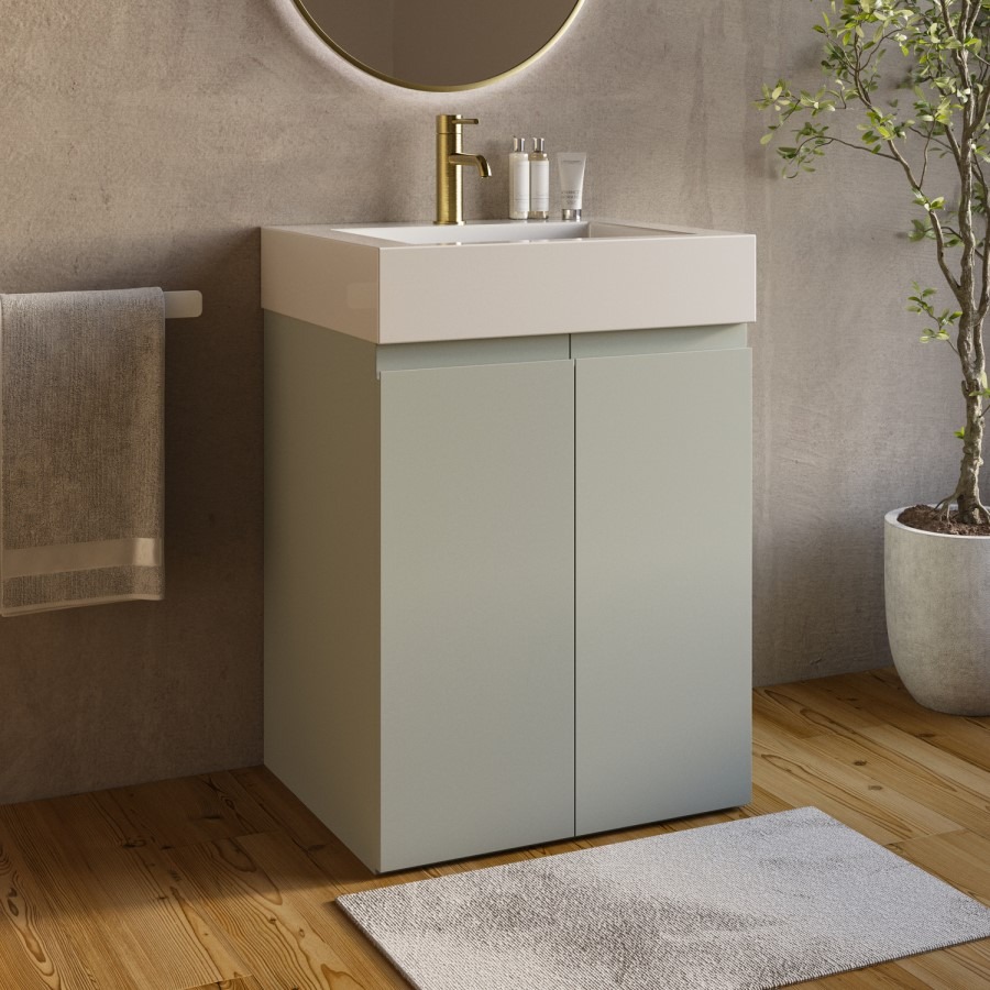 Transform your bathroom with the clean, modern aesthetic of the Panama green 600mm freestanding basin vanity unit. Compact yet highly functional, this sleek unit features soft-close doors with concealed handles, adding a minimalist finish to your bathroom while offering ample storage for everyday essentials.