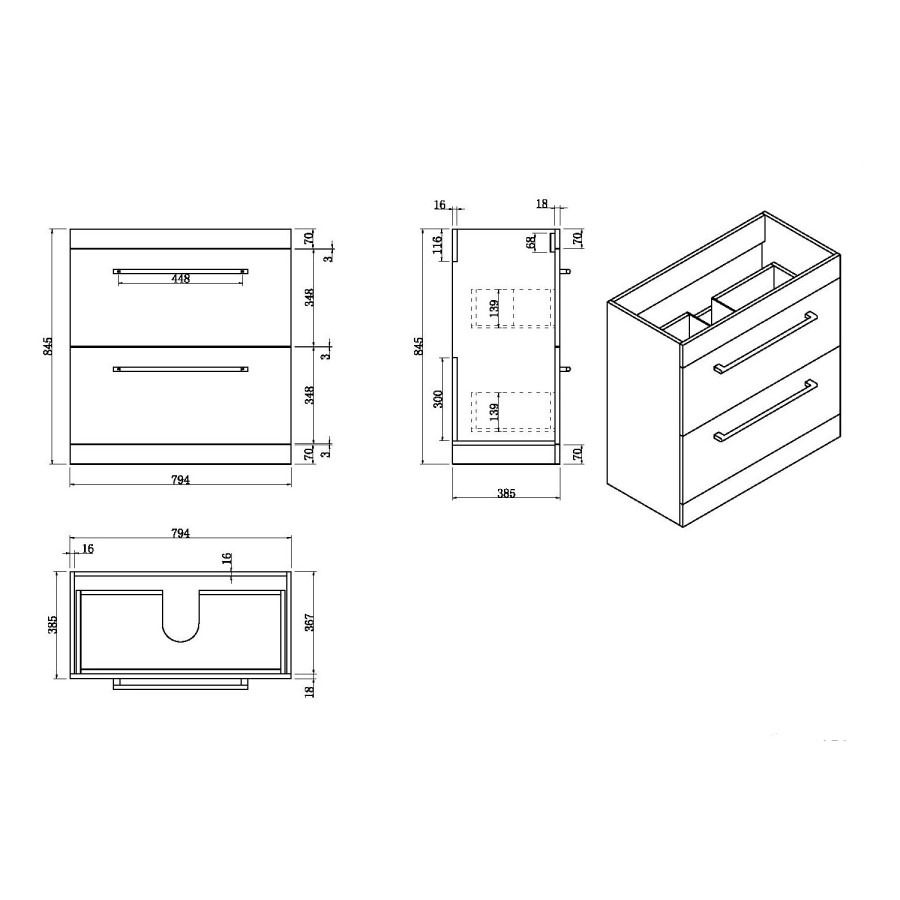 A high-quality gloss white ceramic inset basin is included, which has one central tap hole; a tap isn’t included, so you’re free to choose one of your choice. This vanity unit requires no assembly, secure the basin then install your chosen tap and get to using it right away.