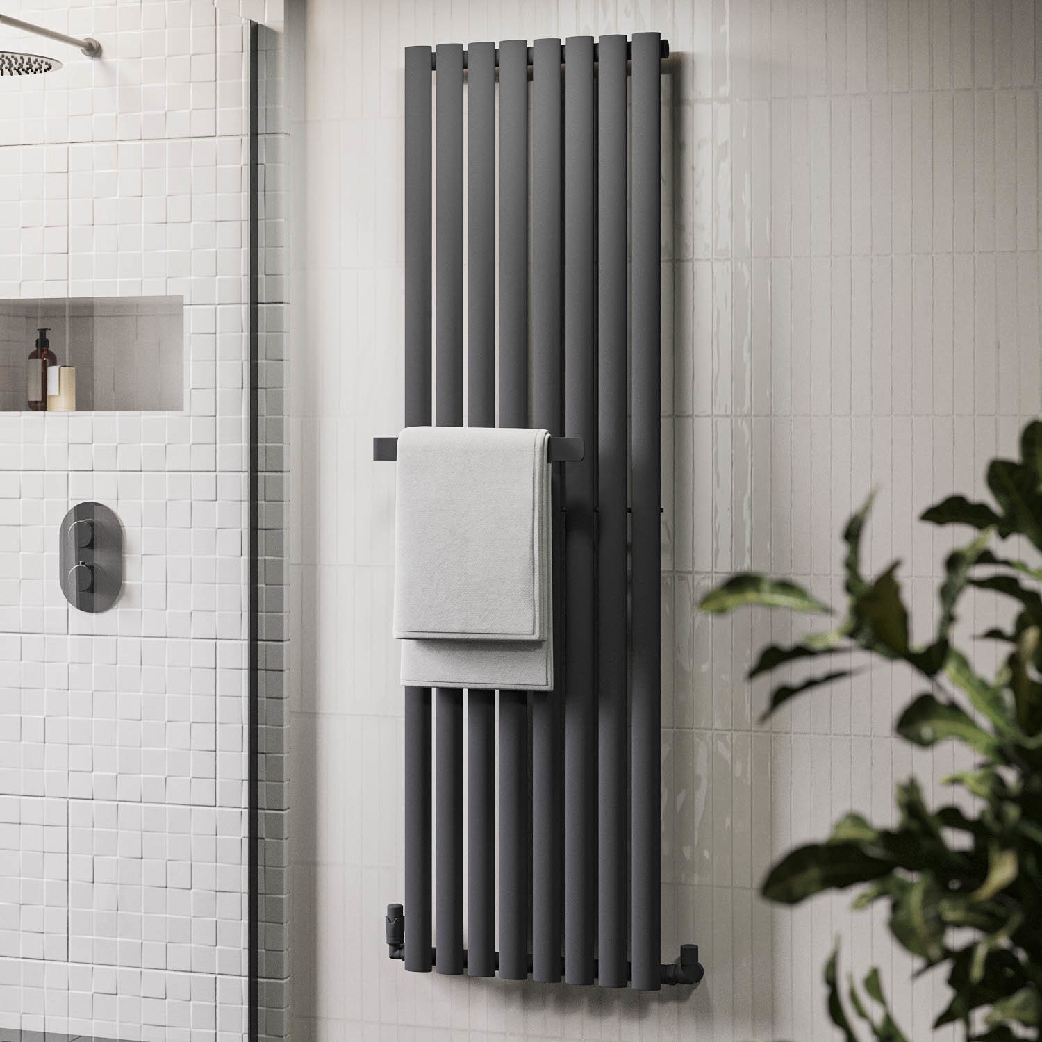 Anthracite Vertical Single Panel Radiator with Towel Bar 1600 x 480mm – Margo