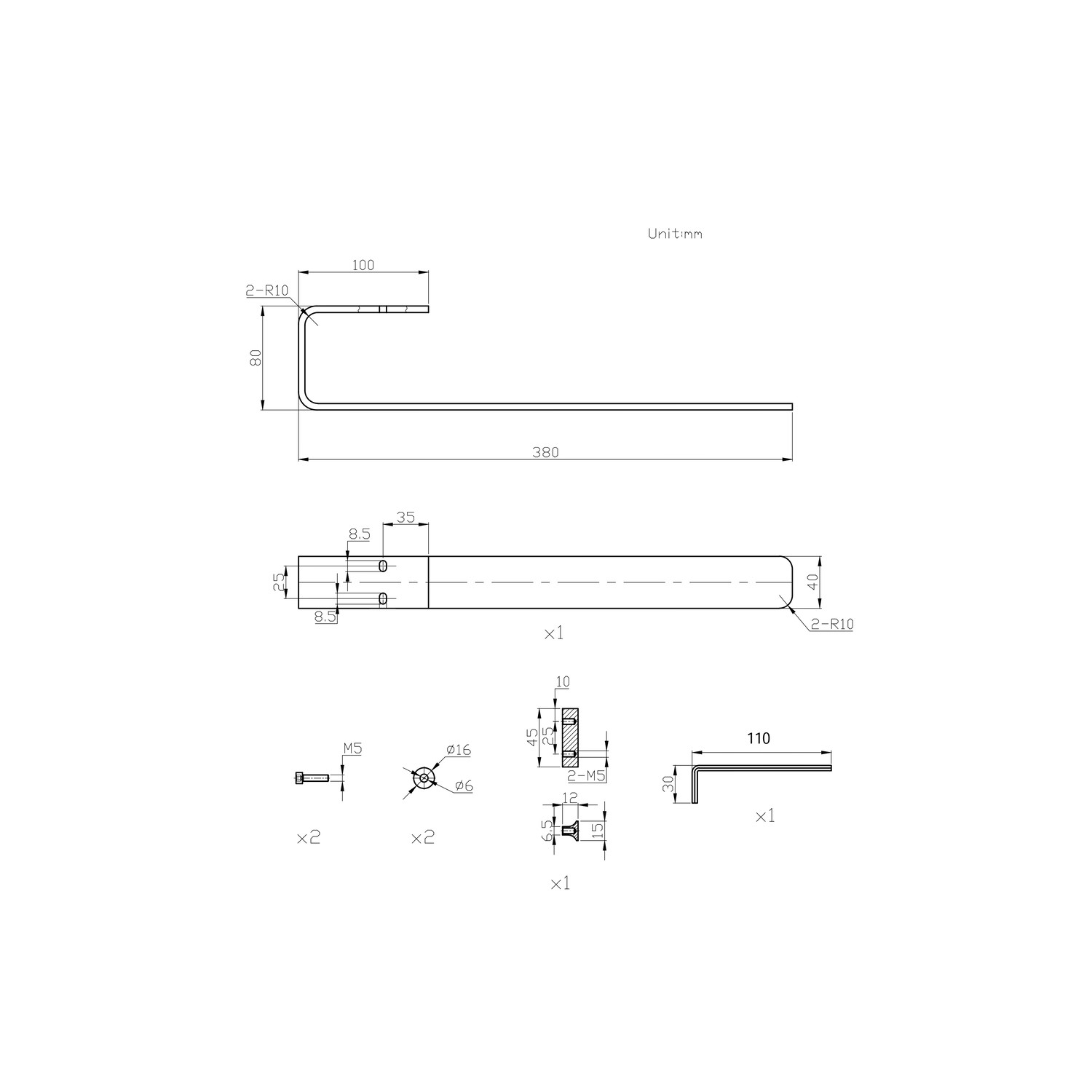 • Towel Bar Dimensions: H40 x W380 x D80 mm