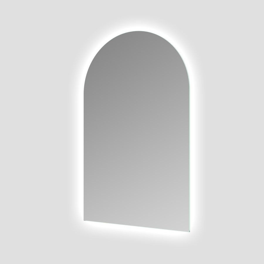 Soft Backlit Glow: LED backlighting enhances the mirrors arch shape and creates ambient illumination around the mirror.