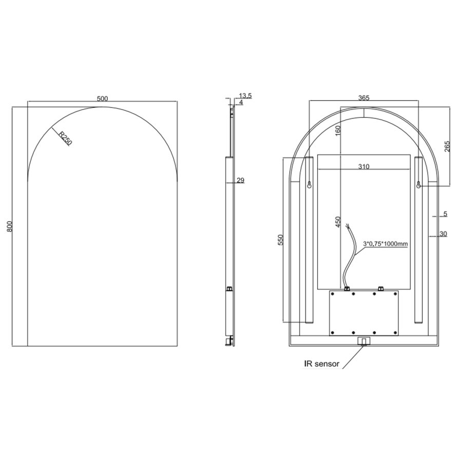 Add the perfect finishing touch to your space with this arched backlit bathroom mirror. The mirror has a hidden motion sensor located in the centre bottom. To activate the light and demisting pad, move your hand across the sensor once at a distance of around 5cm. To turn it off, move your hand across the sensor again. Hold your hand in front of the sensor to change the colour temperature between a warm and cool light. This mirror also has memory function so it will remember your colour temperature preference . It’s IP44 rated, so it’s safe to use in the bathroom. This mirror should be fitted by a qualified electrician.