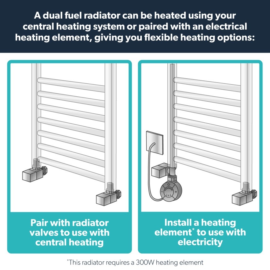 • Please note that a heating element must be purchased to make this towel rail dual fuel
