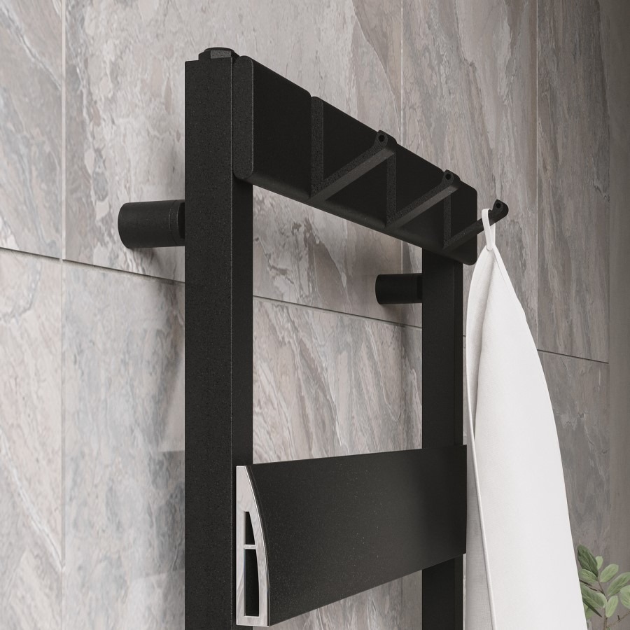 Multiple rails with built-in hooks: Features five broad heating bars and three integrated hooks for drying multiple towels at once, with an even heat distribution.