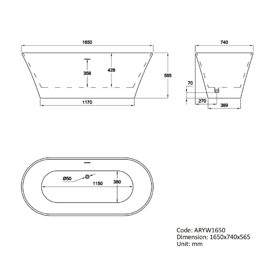 Freestanding Double Ended Bath 1650 x 740mm – Arya