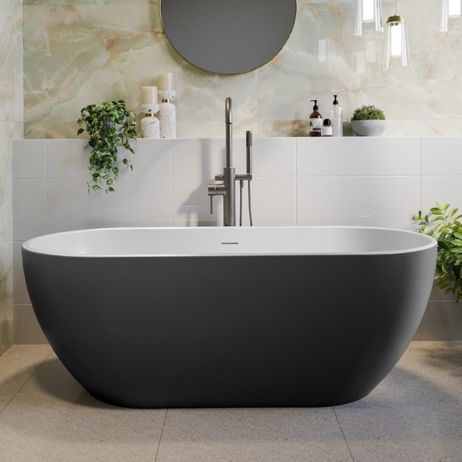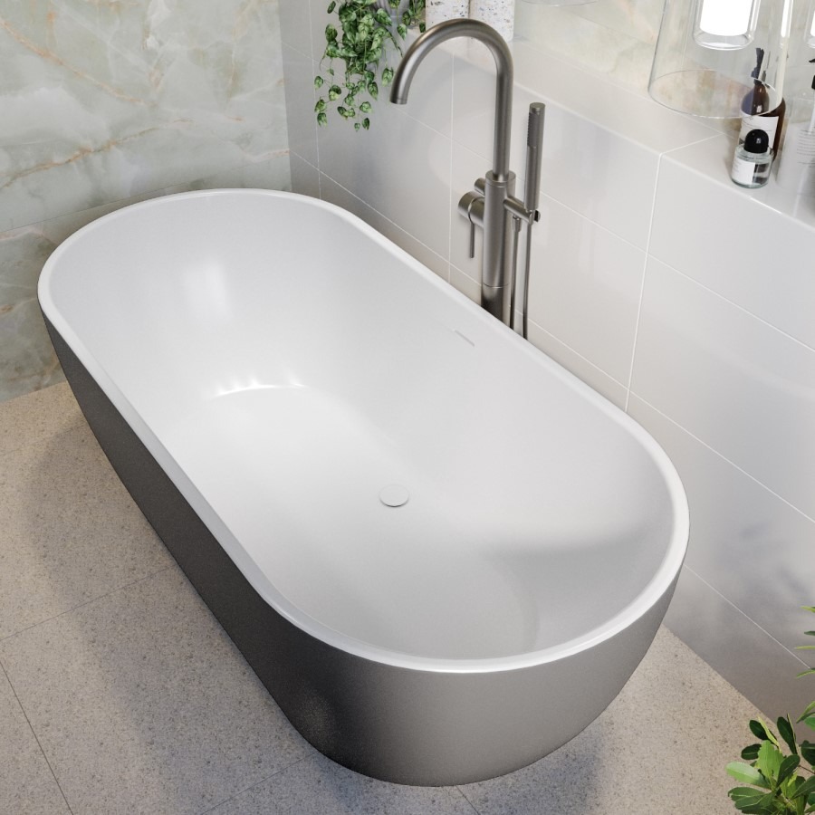 - The outside of the bath is finished in a gunmetal grey colour, to create that focal point in your bathroom