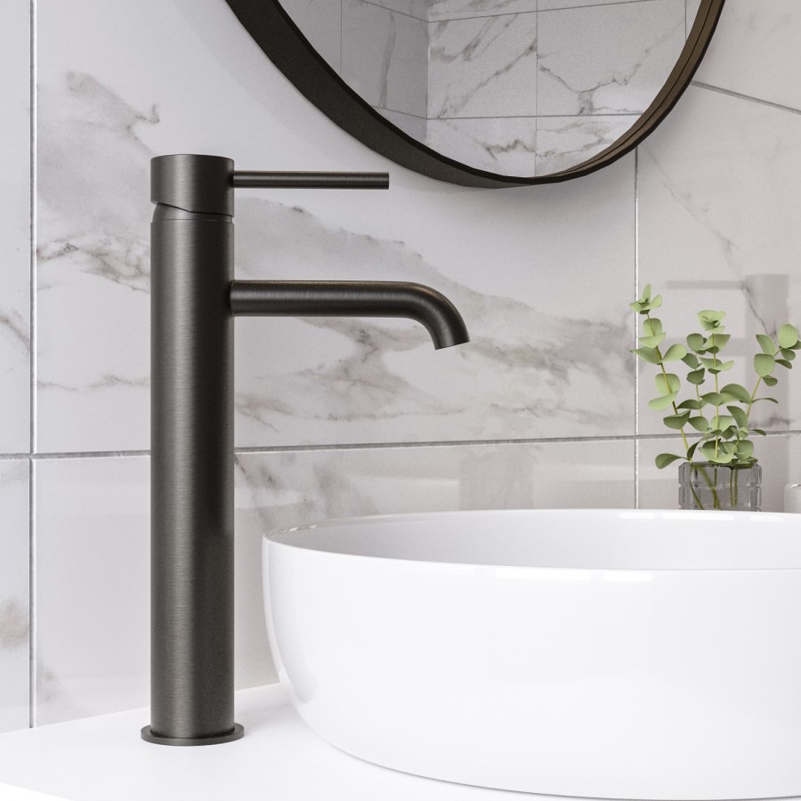 The sought-after high-rise basin mixer tap is the perfect pairing for countertop basins, combining elegance with functionality. Part of the stylish Arissa bathroom tapware range, this tap showcases simplicity and sophistication in equal measure. Crafted from high-quality brass and finished to an exceptional standard, it delivers reliable, long-lasting performance with a sleek, contemporary design.
