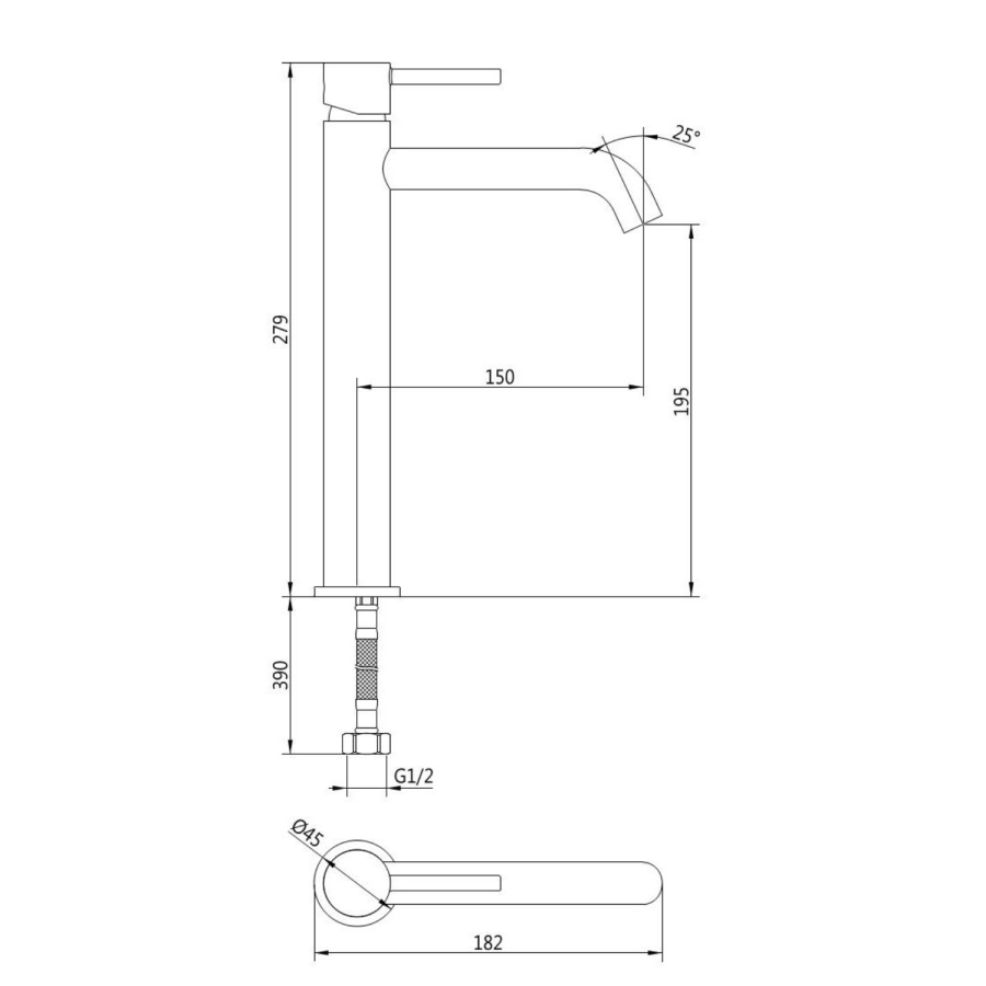 - Flexi hose length: 390mm