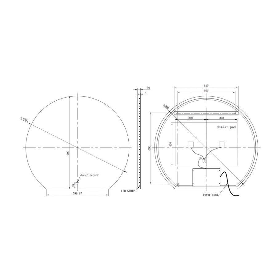 - Mirror Dimensions: H900 x W1000 x D30mm