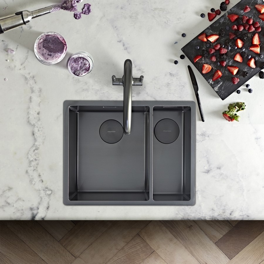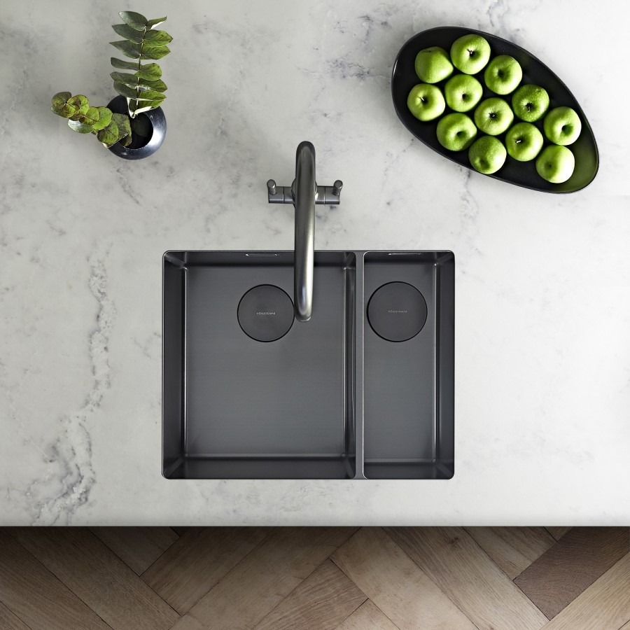 Create a striking sink area with Spectra, a new metallic PVD stainless steel collection, which is available in three sumptuous shades designed to add dimension and glamour to any contemporary kitchen scheme.