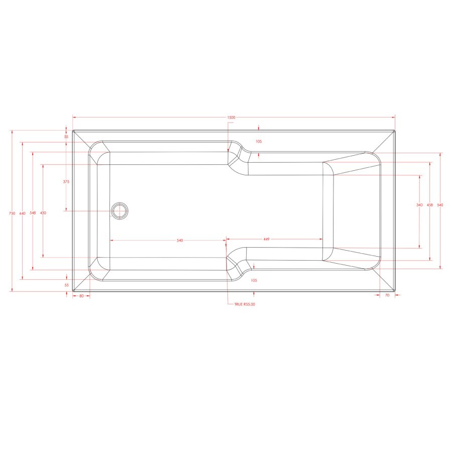 - Single-ended shower bath without pre-drilled tap holes