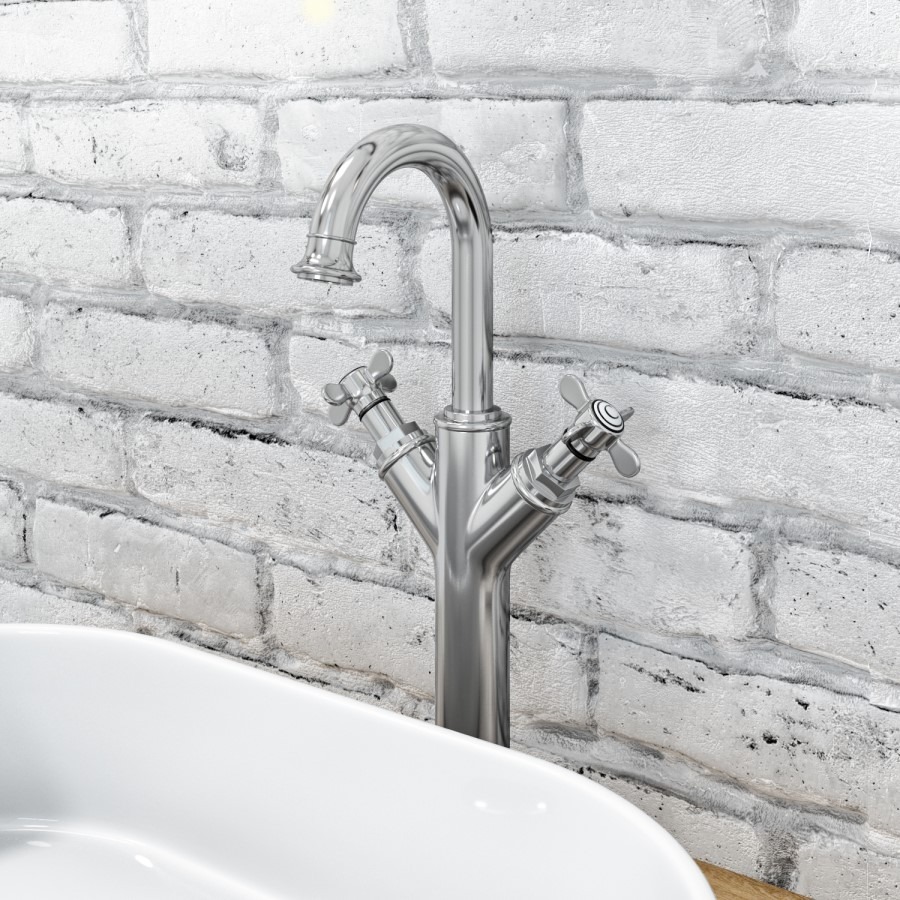 This classic traditional bathroom tapware sets a highly sought-after style within the bathroom. Manufactured to an exceptional finish and designed for a clean, sophisticated look. It incorporates a modern design and the highest quality brass for a highly reliable and long-lasting operation. The electroplated finish strengthens the tap’s resistance to rust and corrosion, boosting longevity and endurance. The Camden is elegant and high-end, well suited for traditional and country-style bathrooms. On this tall basin mixer, there are two stylish cross-head handles, one for hot and one for cold. Plus, the tap spout can rotate 360° meaning you can move the spout out of the way.
