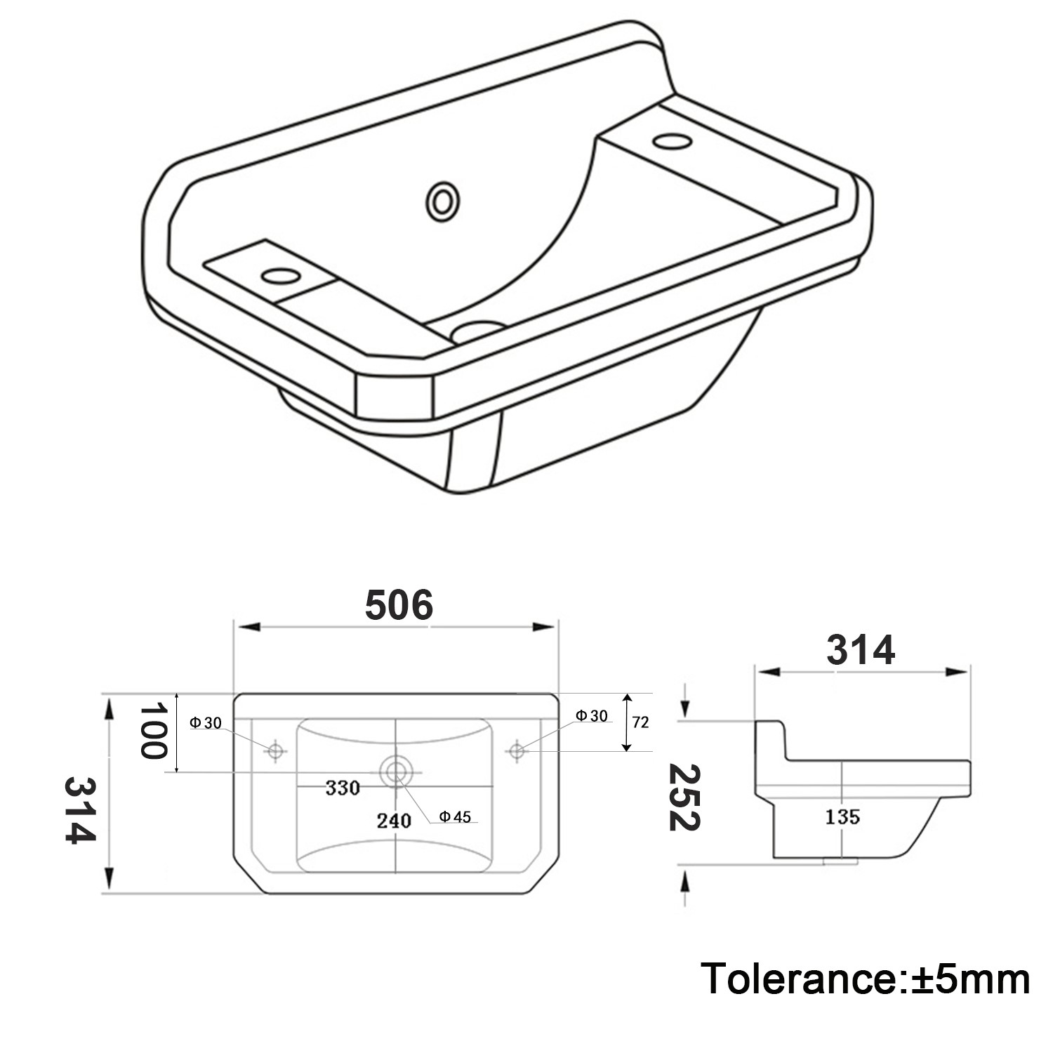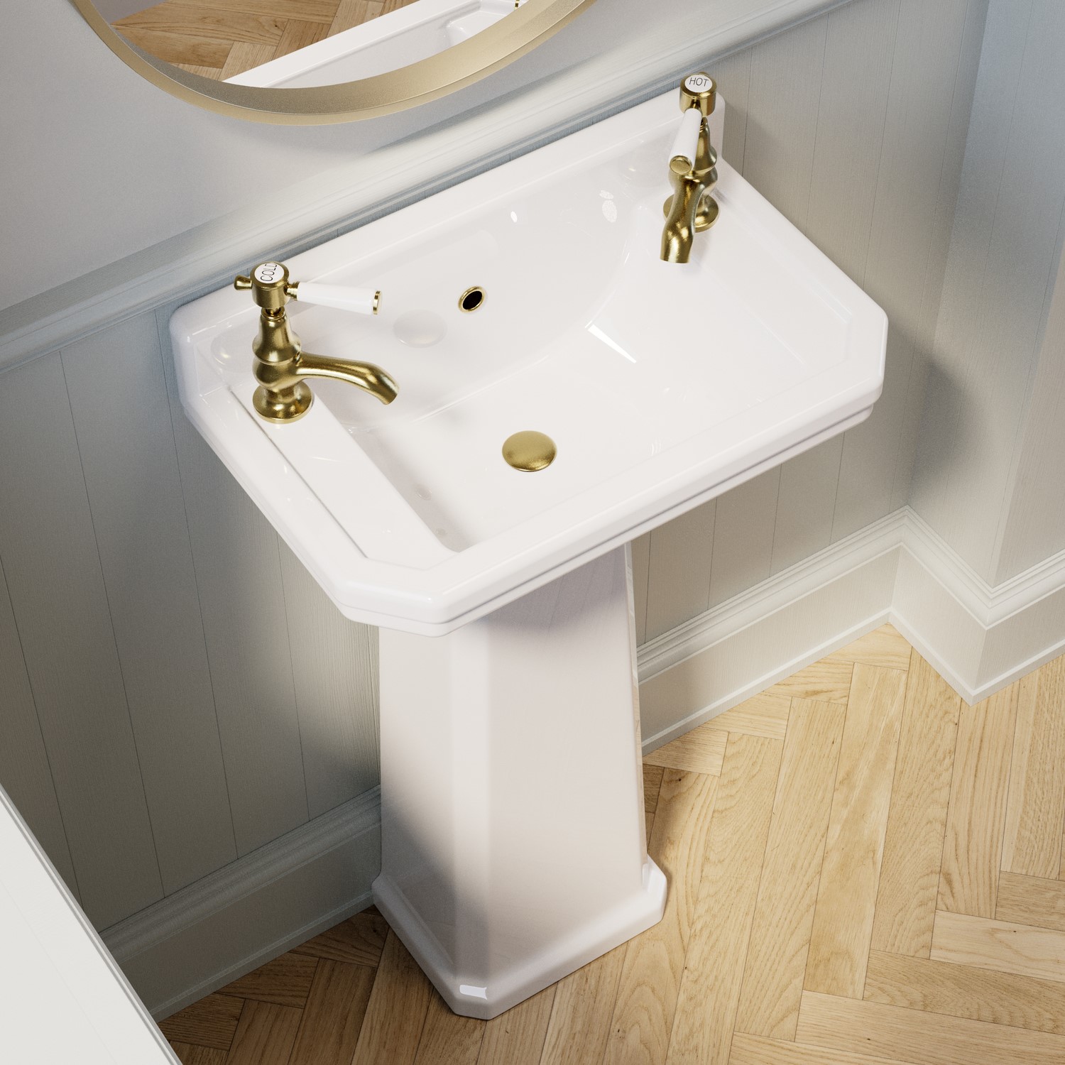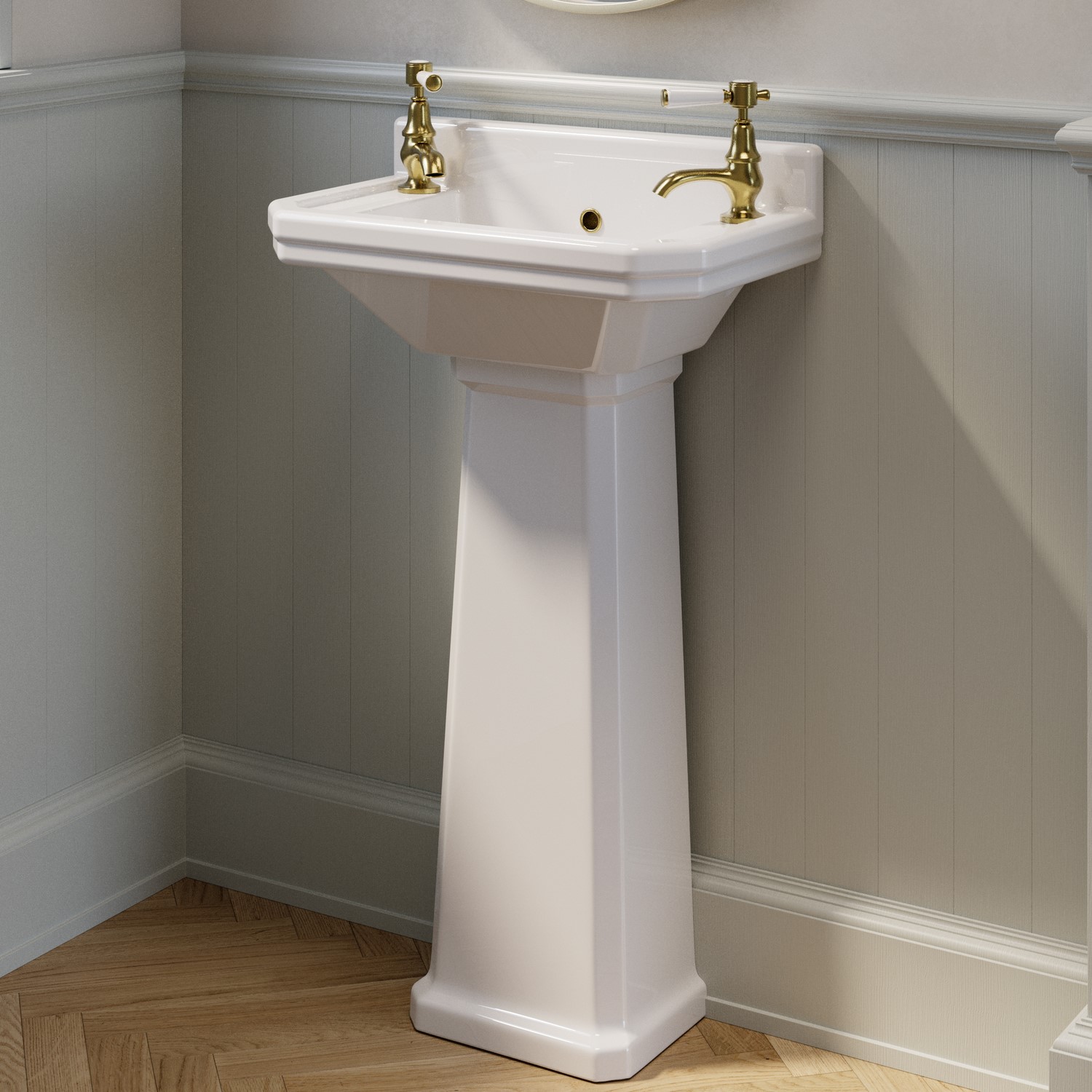 - Traditional cloakroom full pedestal basin with 2 tap holes