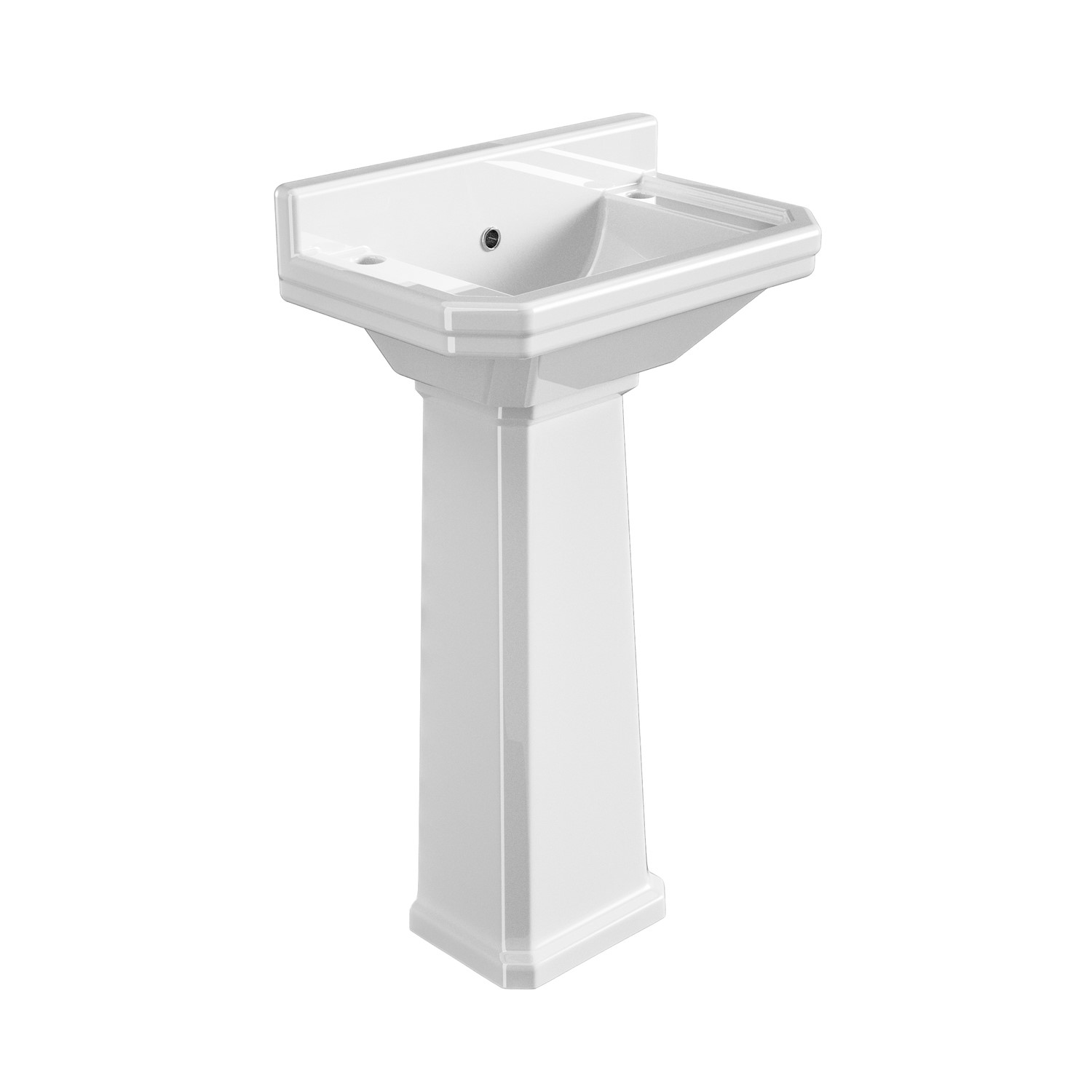 This full pedestal traditional basin oozes period charm with its vintage aesthetics, helping you achieve that elegant British bathroom look from eras of great design. This smaller size is perfect for cloakrooms or smaller spaces.