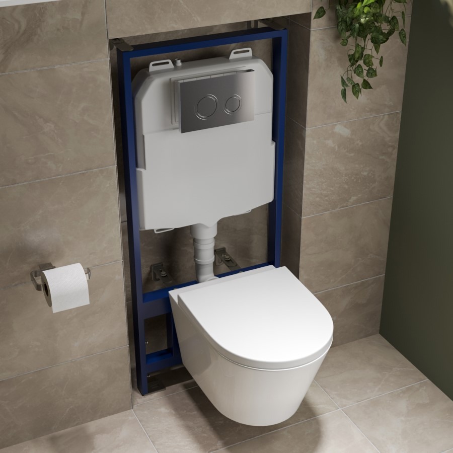 Wall-Hung Frame with Short Projection: Easy-to-install, 1168mm mechanical fixing frame and cistern create a floating toilet effect. The compact 500mm projection saves space, and the frame is adjustable 0-200mm for custom installation.